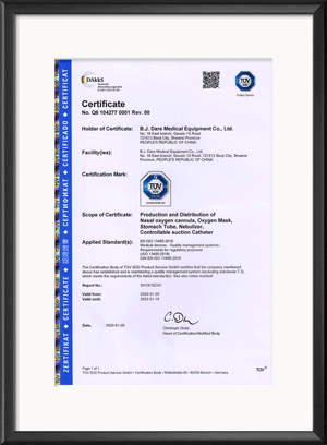 Our company: Established in 1996, B. J. Dare Medical Equipment Co., Ltd specializes in the research, development, and production of medical devices in oxygen therapy, respiratory therapy, medical suctioning, and intensive care. The company headquarters are located in the City of Baoji, Shaanxi province, China, with our research and development center in Beijing. Our company has been awarded the state high-tech enterprises and the state-level industrial enterprises with the certifications of ISO9001, ISO13485, and EU CE, and we hold 22 utility model patents and three design patents. We have built our reputation with our product’s superb quality and variety over time. Our products are favored by tens of thousands of customers since 1996.