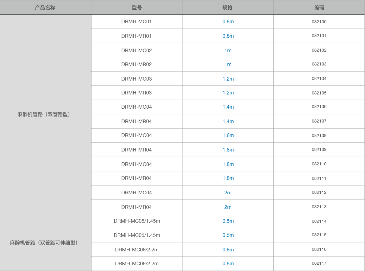The product features various lengths and specifications of anesthesia tubing. The connectors are standardized and can be used with different anesthesia machine. The product has excellent elasticity, softness, transparency, and air tightness.