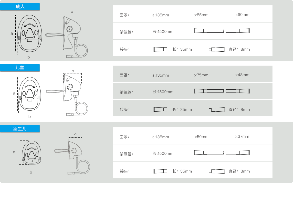 2.產(chǎn)品由面罩、輸氧管、專用接頭組成,獨(dú)立包裝。