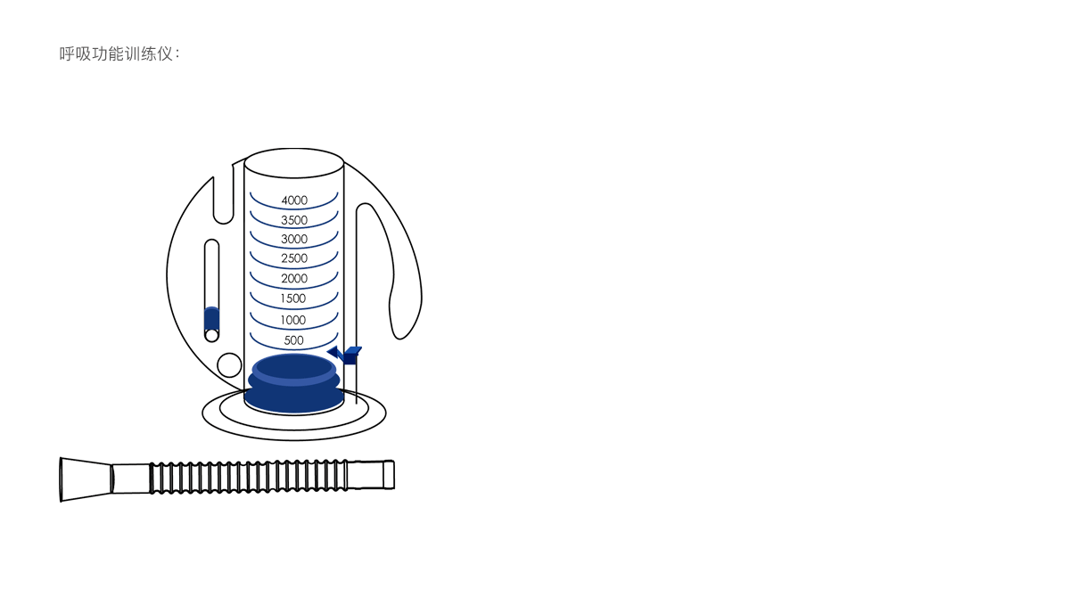 管體內(nèi)氣流阻力設(shè)計(jì)合理,可有效鍛煉患者呼吸功能,方便清洗、同一患者可反復(fù)使用。