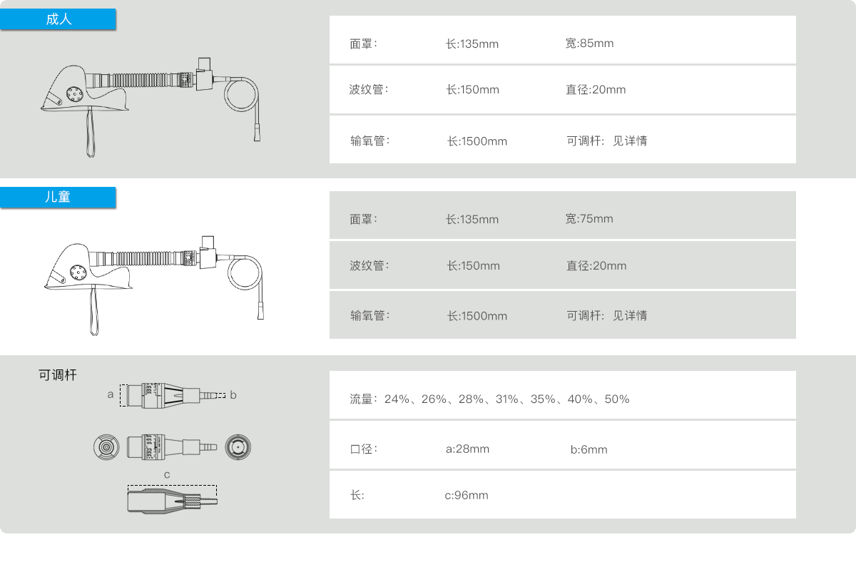 2.產(chǎn)品由面罩、輸氧管、專用接頭組成。獨立包裝。
